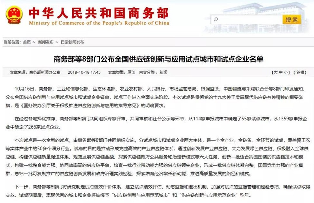 Recently, the ministry of commerce released the results of the evaluation of national pilot cities and enterprises for supply chain innovation and application, and the pilot work has entered the stage of full implementation. Xiamen applied for the pilot qualification in the name of Xiamen area of China (Fujian) pilot free trade zone, becoming the only pilot city in Fujian province. Xiamen C&D Inc., with its advanced supply chain operations management concept and excellent supply chain management and coordination level, has become one of the 266 enterprises listed in the pilot enterprises nationwide.