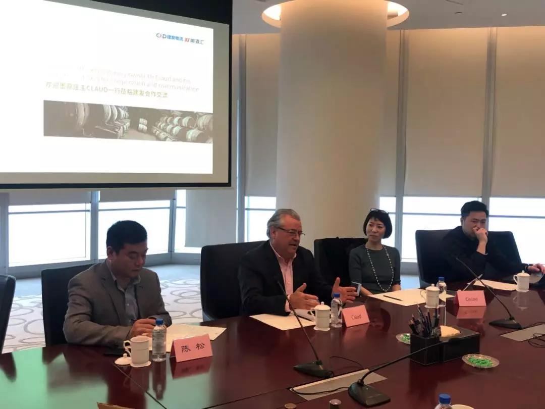 On March 26, Claud, owner of chateau MEUKOW, Asia-Pacific brand representative, President and brand manager of Shanghai Bai-yi, a brand operator in Asia Pacific, and their delegation visited C&D logistics group, a subsidiary of C&D Inc. The leaders such as group chairman Wang Zhibing and general manager Zhou Lili of C&D logistics, received visitor guest warmly. Both sides spread out depth to communicate about C&D extraordinary XO phase-type cooperation.