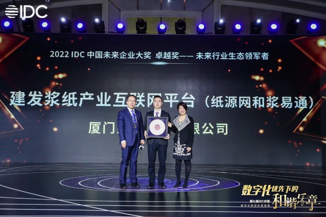 Recently, the "2022 IDC Digital Transformation Annual Ceremony" hosted by IDC, a leading global IT market research and consulting firm, was held simultaneously in Beijing and Singapore. During the event, the two Internet-based industry platforms of C&D Pulp & Paper, i.e., PaperSource Platform and PulpEasy Platform, won the Excellence Award in Asia Pacific and China for Future Leader of Industry Ecosystems at IDC’s Future Enterprise Awards by virtue of their exploration and experience in the digital field.