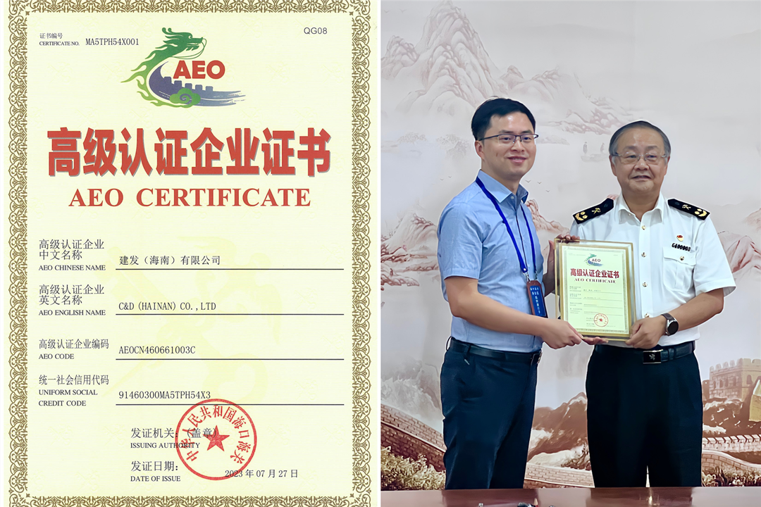 Recently, C&D (Hainan) Co., Ltd., a wholly-owned subsidiary of C&D Inc. (600153.SH), was successfully awarded the “AEO Advanced Certification Enterprise” qualification. AEO Advanced Certification is the highest level of customs credit management, and enterprises participating in the advanced certification must meet the high standards and strict requirements of the customs in multiple aspects such as internal control, financial status, law-abiding norms, and trade security.
