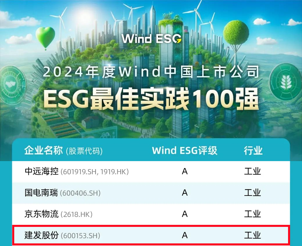 Recently, the “2024 Wind China Listed Companies ESG Best Practices Top 100” list was officially announced, with C&D Inc. (Stock Code: 600153.SH) achieving an “A” rating for its outstanding performance in ESG practices.